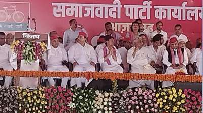 आजमगढ़ में सपा कार्यालय और आवास का भूमि पूजन करने पहुंचे थे अखिलेश