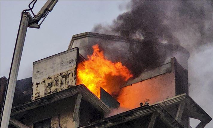 चार मंजिला इमारत में लगी आग से मचा हड़कंप, राहत कार्य जारी